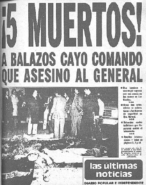 "Cinco muertos: A BALAZOS CAYO COMANDO QUE ASESINO AL GENERAL" "Violento Final Para Comando de la Muerte".