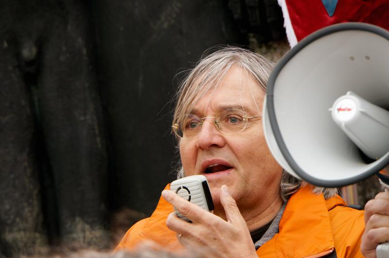 XL'écrivain autrichien Erich Hackl, membre de GRSÖ, lors de son discours pendant les cérémonies en honneur aux républicains espagnols.