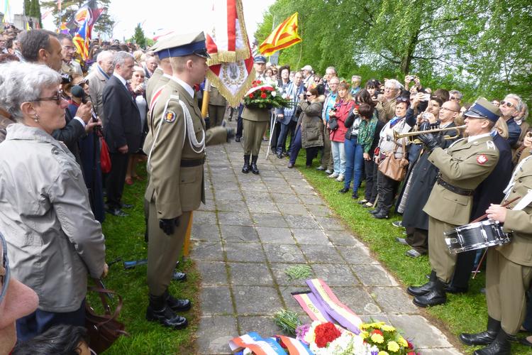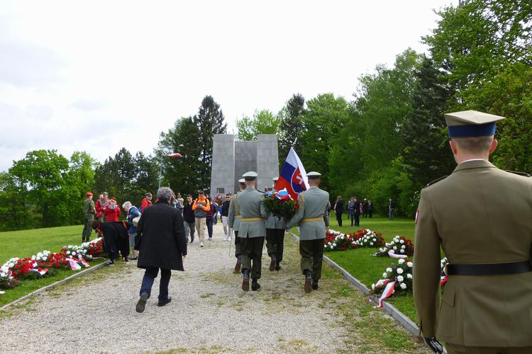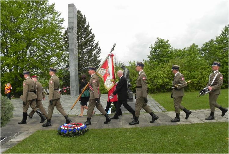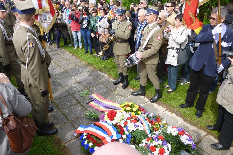 XDélégation militaire polonaise lors de son déplacement entre les différents monuments, pour rendre un hommage devant chacun d'entre eux.