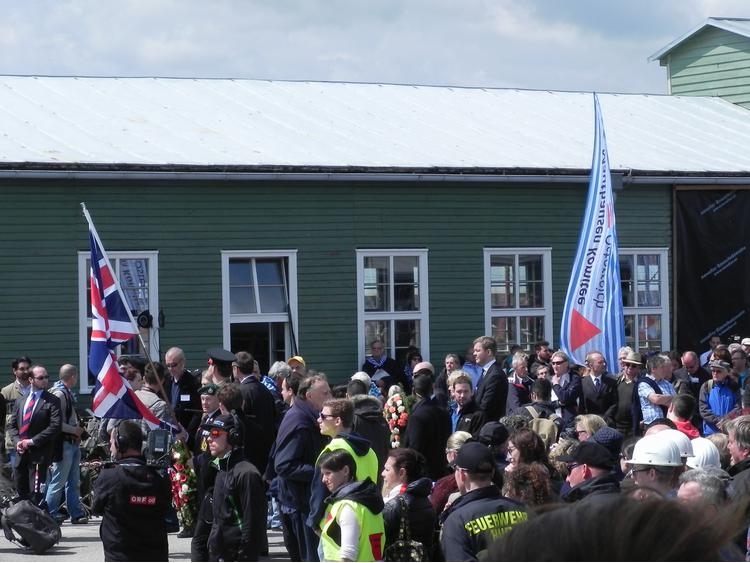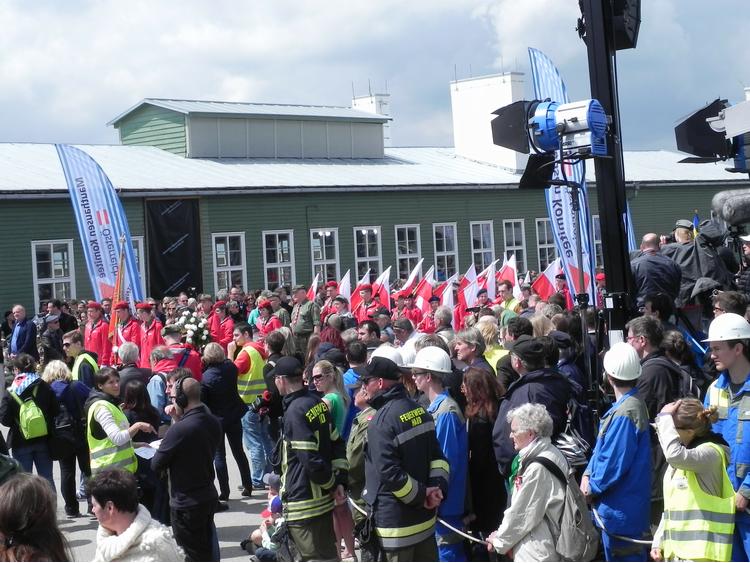 (Photo Equipo Nizkor, 08mai05)Pr�c�dente SuivanteC'est sur cette place que se déroule la cérémonie générale, à laquelle participent des délégations officielles et des délégations de victimes et de familles de nombreux pays. La place est flanquée des baraquements qui ont été conservés. Chaque année, une tribune d'où est présentée la cérémonie ainsi qu'un espace réservé à la formation musicale et au choeur, y sont installés.