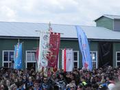 Haga click para ampliarBajo el mismo portal de piedra que el 5 de mayo de 1945 recibió a los blindados del Ejército de los Estados Unidos, pero sin el águila nazi que entonces aún coronaba la edificación, han desfilado hoy las delegaciones de decenas de países y agrupaciones de víctimas hacia la Apellplatz, el patio central del campo.