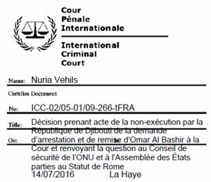 Décision de la CPI prenant acte de la non-exécution par la République de Djibouti de la demande d'arrestation et de remise d'Omar Al Bashir